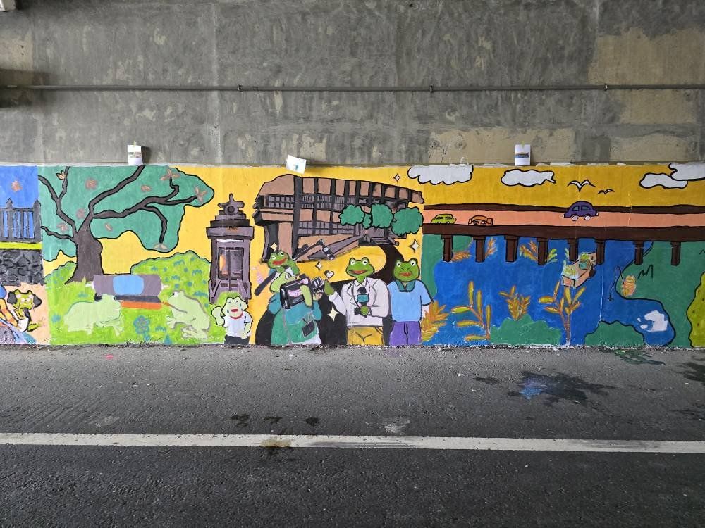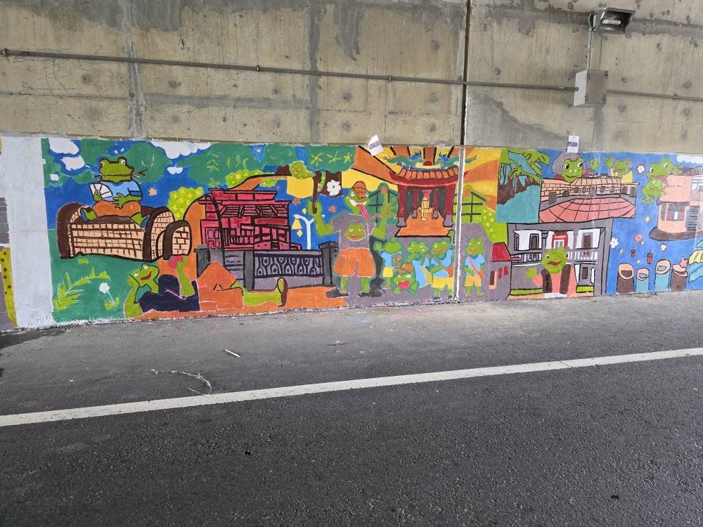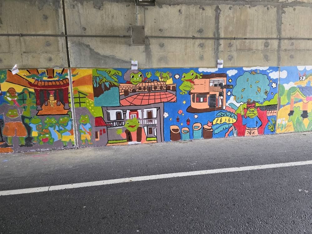 彩繪圖案以社區各景點為主要元素,另加入樹蛙擔任串場角色,充份展現滿滿的地方特色。