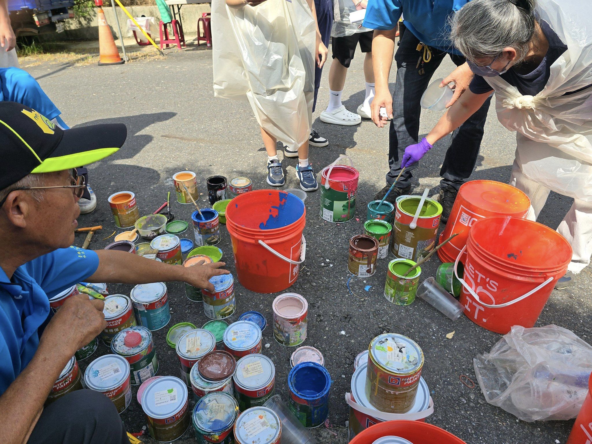 今天真是個好日子,是孔子誕辰紀念日,也是國定的教師節。除此之外,更是本社區舉辦一年一度彩繪涵洞活動的日子,天氣風和日麗真是神祐活動,不像去年大家穿著雨衣在雨中作畫(也避開近日要來的颱風)。